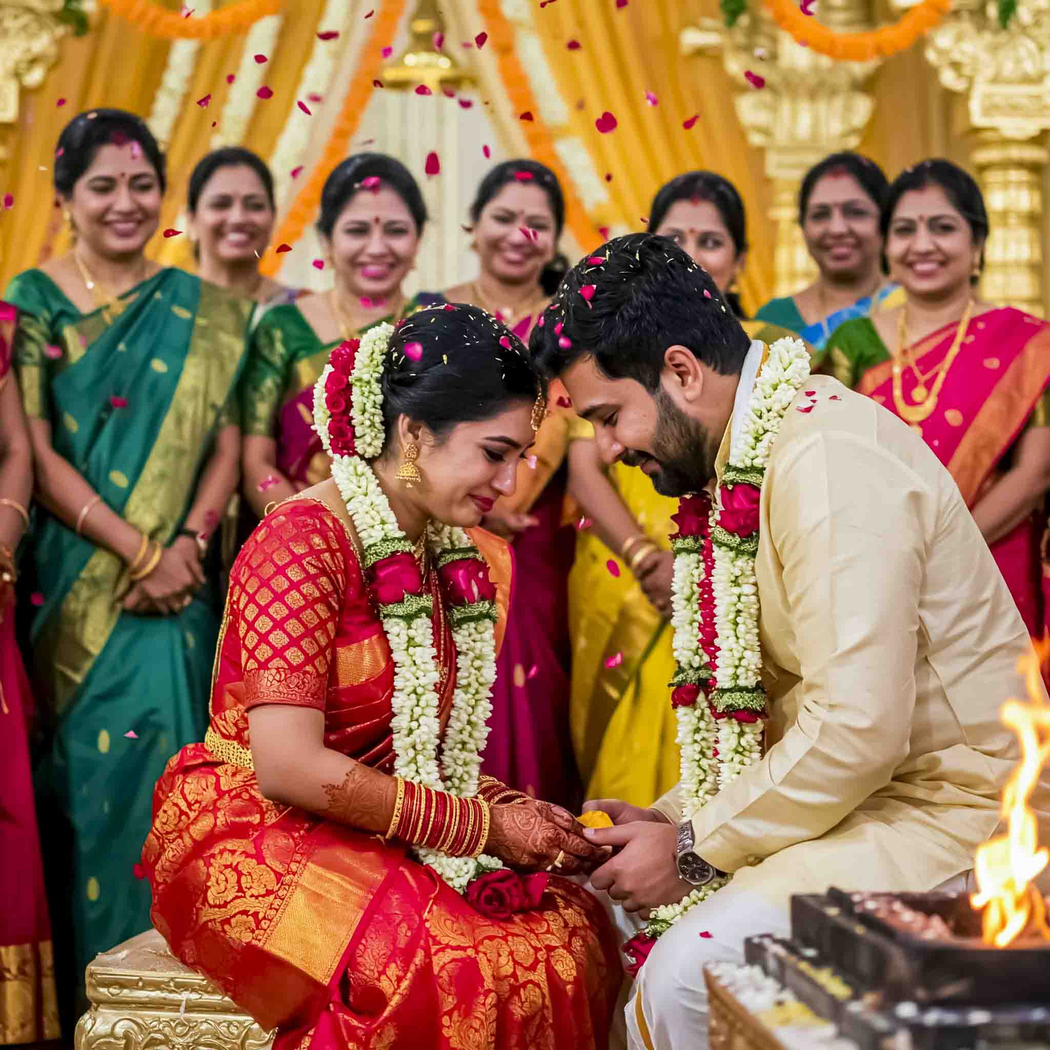 Our team of professional photographers brings a perfect blend of technical expertise and creative artistry to every wedding. We don't just take pictures, we craft visual narratives that authentically represent your love story. This dedication to excellence has established us as one of the top wedding photography teams in Hyderabad.