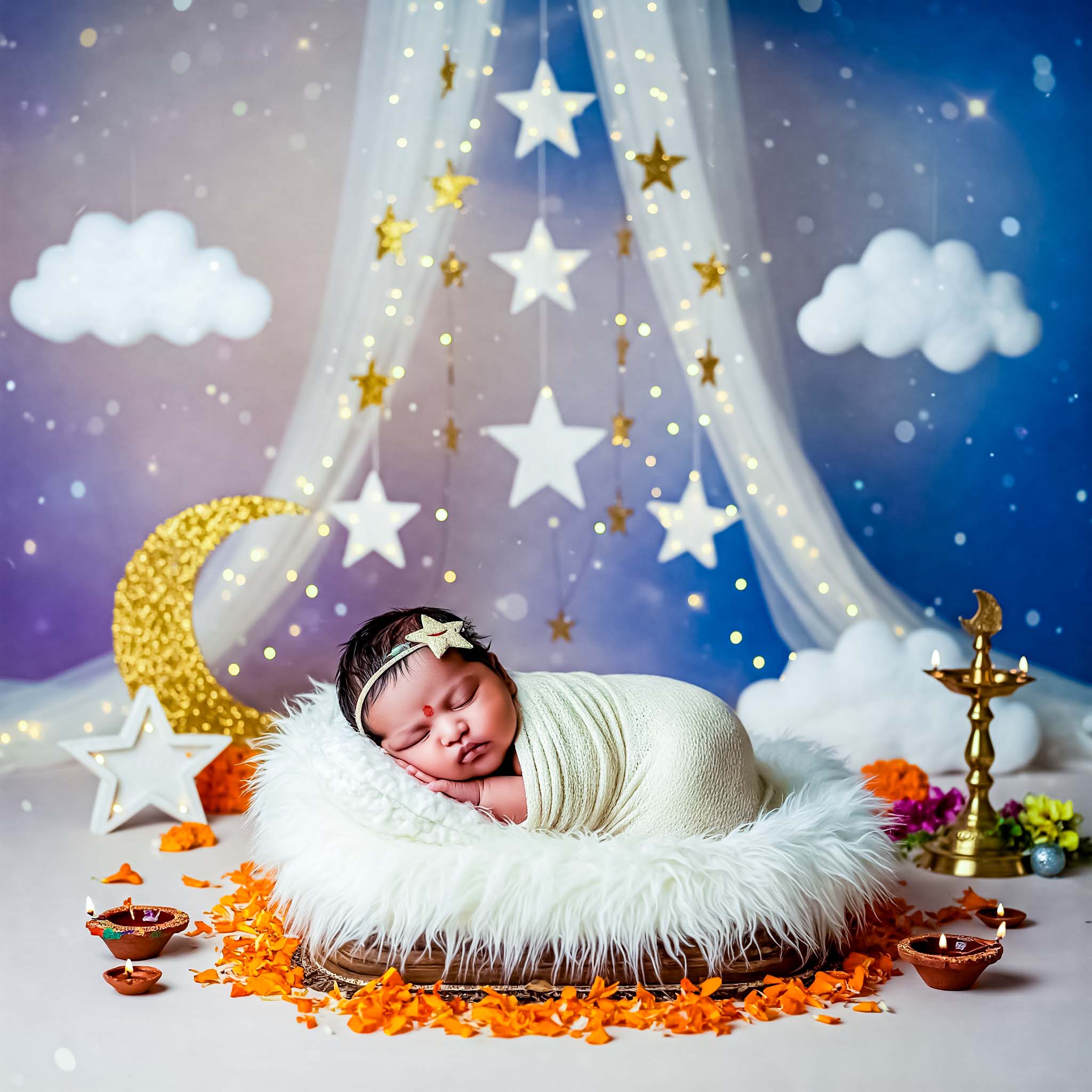 Personalized setups, props, and backdrops to match your vision and bring creativity to your baby’s photoshoot. Whether you prefer a dreamy fairy tale setting, a minimalist aesthetic, or a playful, colorful theme, we design each session to reflect your ideas. Every detail is carefully planned to make the images unique and meaningful.