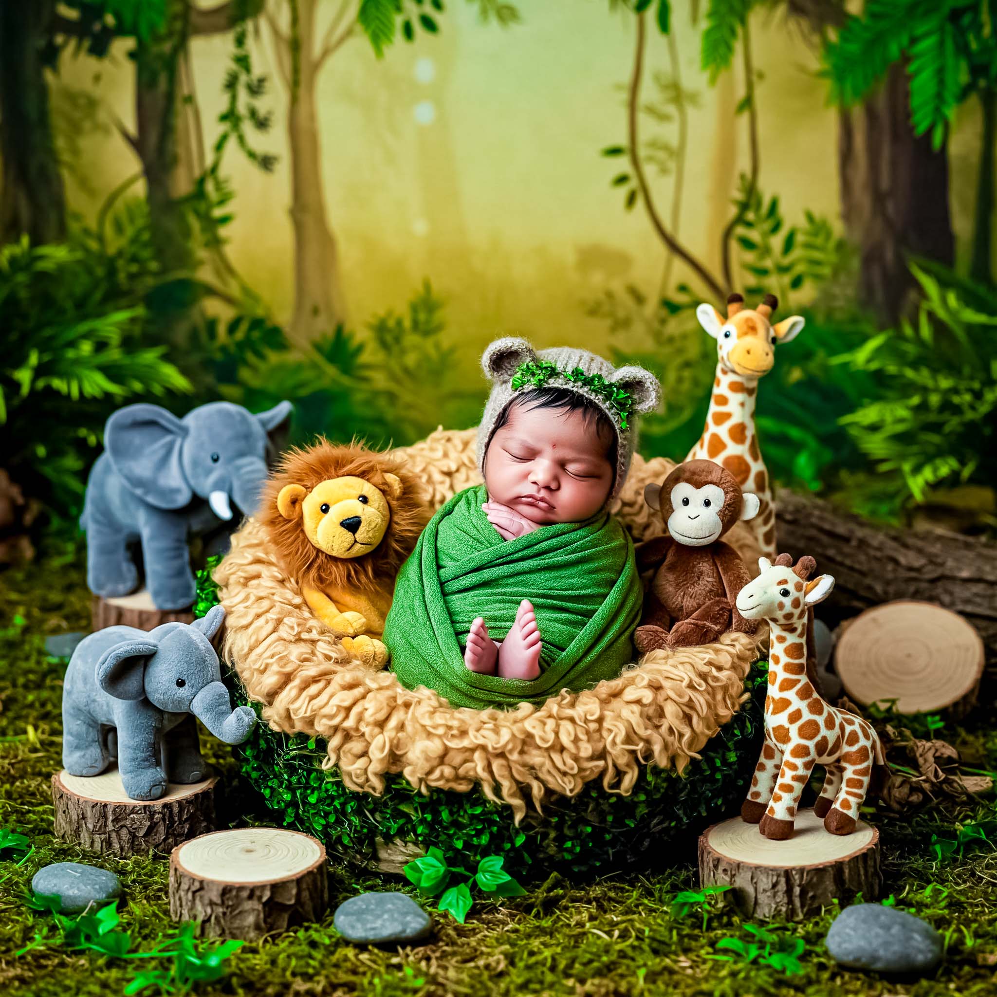 Personalized setups, props, and backdrops to match your vision and bring creativity to your baby’s photoshoot. Whether you prefer a dreamy fairy tale setting, a minimalist aesthetic, or a playful, colorful theme, we design each session to reflect your ideas. Every detail is carefully planned to make the images unique and meaningful.